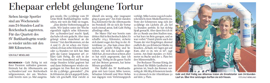 24 h Lauf Reichenbach | 30.06.2018 | Olaf Fiebig | 163,3 km | 24:00:00 h | 1. |